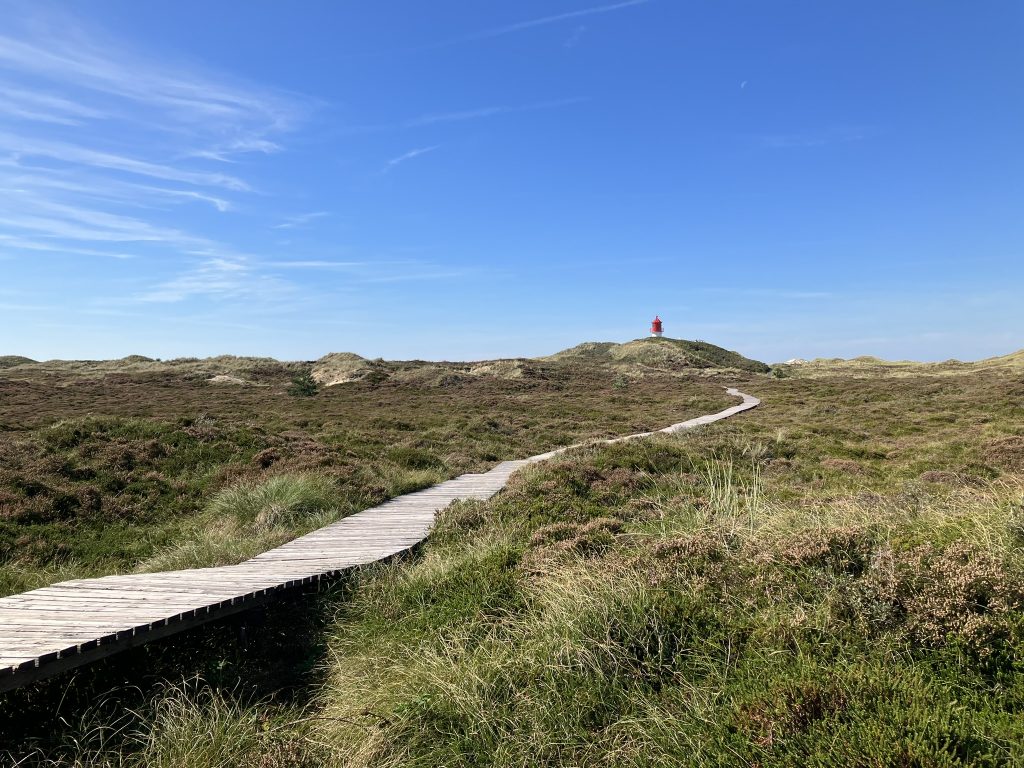 Auf Amrum führt der Bohlenweg durch Dünen und Heide bis hin zum Meer – klar und sichtbar, mit einem Ziel vor Augen. Und doch ist der Weg nicht immer gerade: mal leicht bergauf oder bergab, mal vom Wind kräftig ins Gesicht geblasen, mal von Regen und Wetter gezeichnet.
